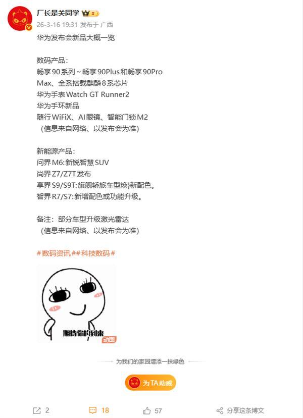 日前,数码博主“厂长是关同学”整理了将在发布会上登场的新品,具体信息如下: